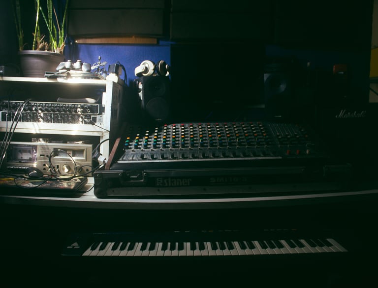 Oferecemos produção musical personalizada, gravações remotas de alta qualidade, aulas online e materiais didáticos em português para atender suas necessidades como produtor, músico ou criador.
